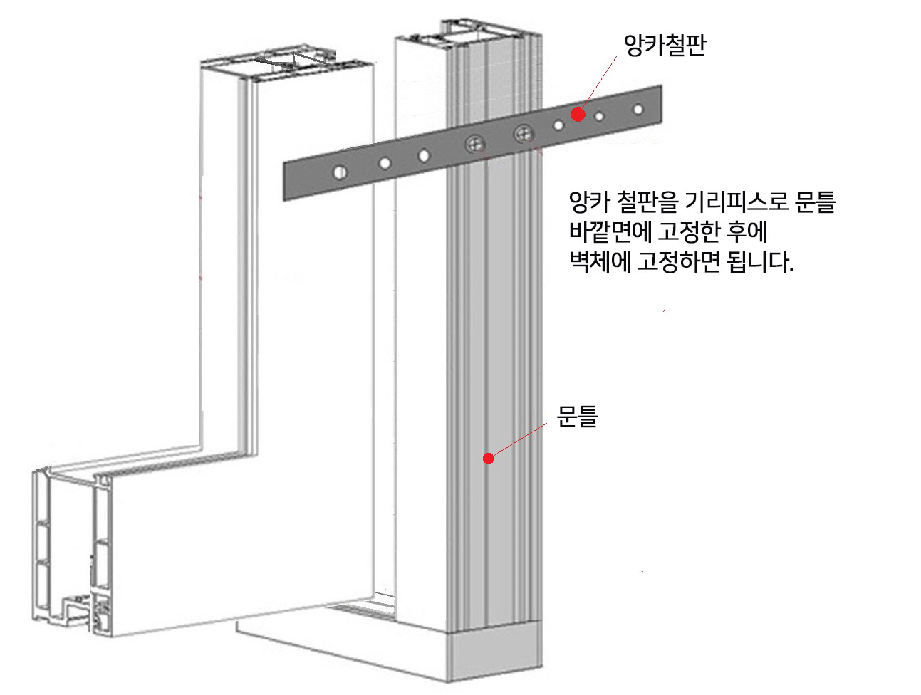 2. ¹®Æ² ¹Ù±ù¸é¿¡ öÆÇÀ» ÀÌ¿ëÇØ¼ º®¸é¿¡ °íÁ¤ÇÕ´Ï´Ù.