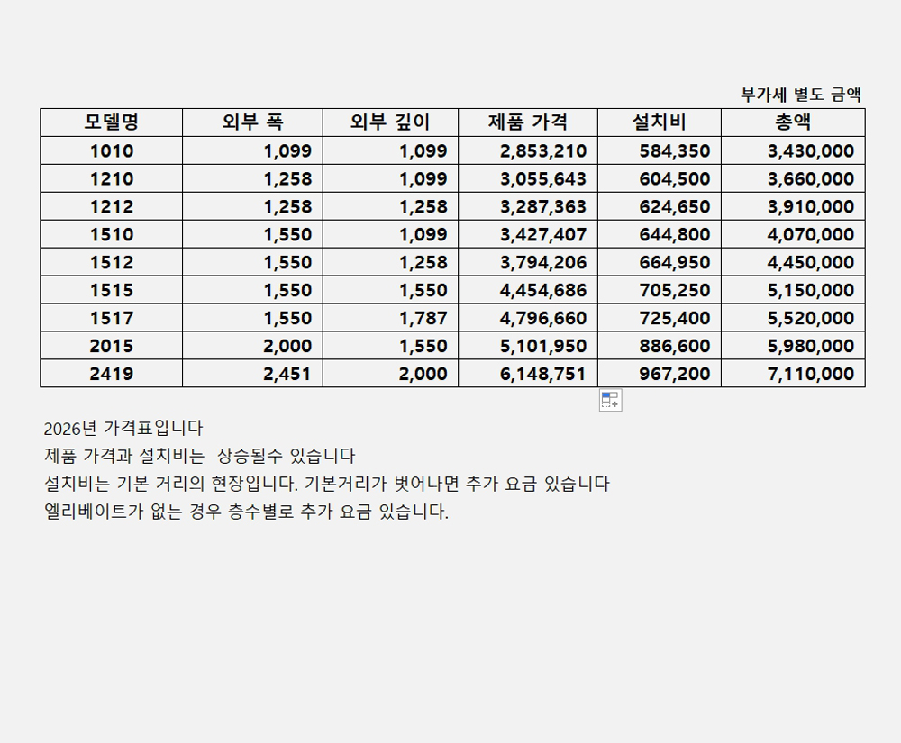 ¡ã Å×À̺íÀÇ ¸ðµ¨º° °¡°Ý (ºÎ°¡¼¼ º°µµ)